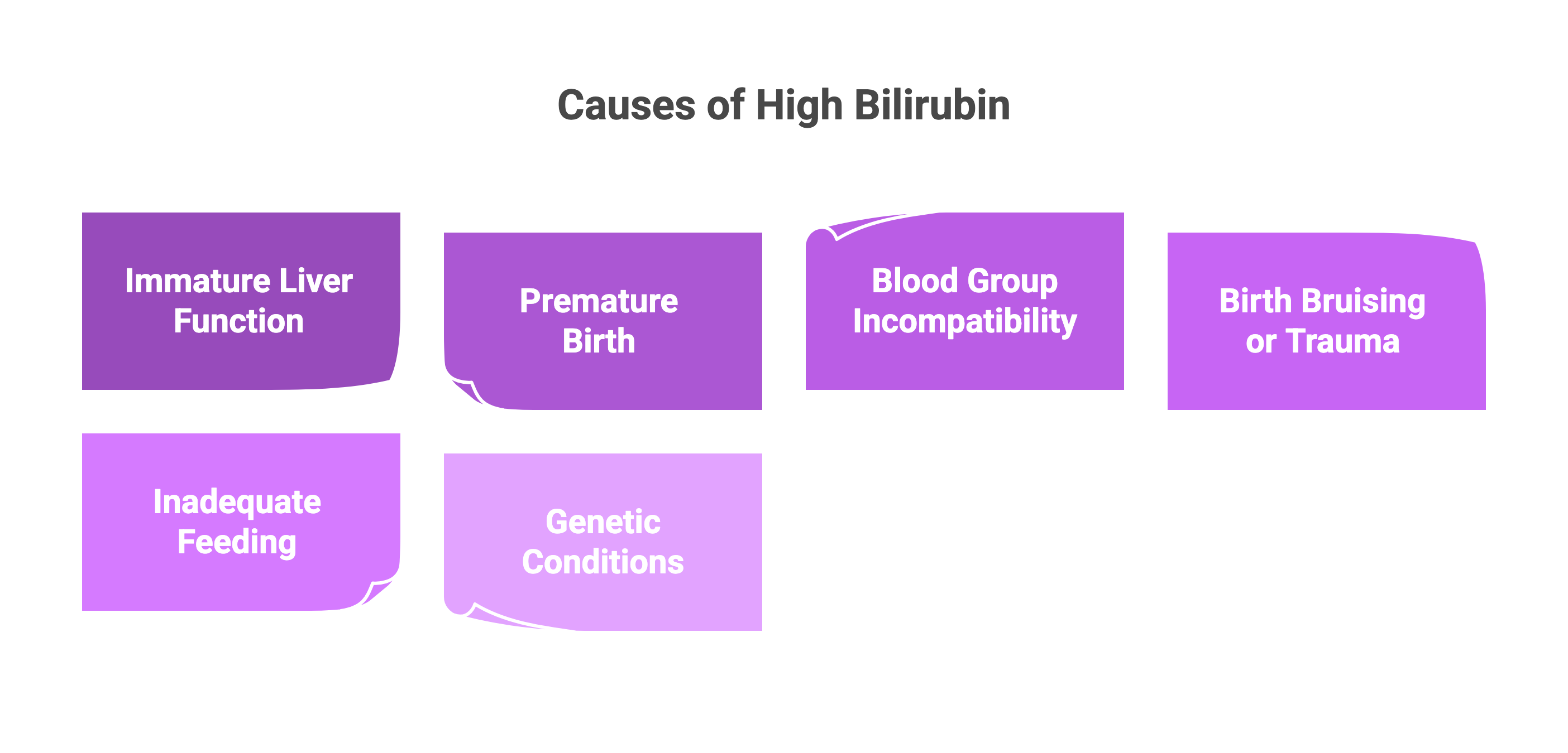 High bilirubin levels occur when production exceeds the newborn’s ability to eliminate it. Identifying these causes helps determine when closer monitoring is needed.