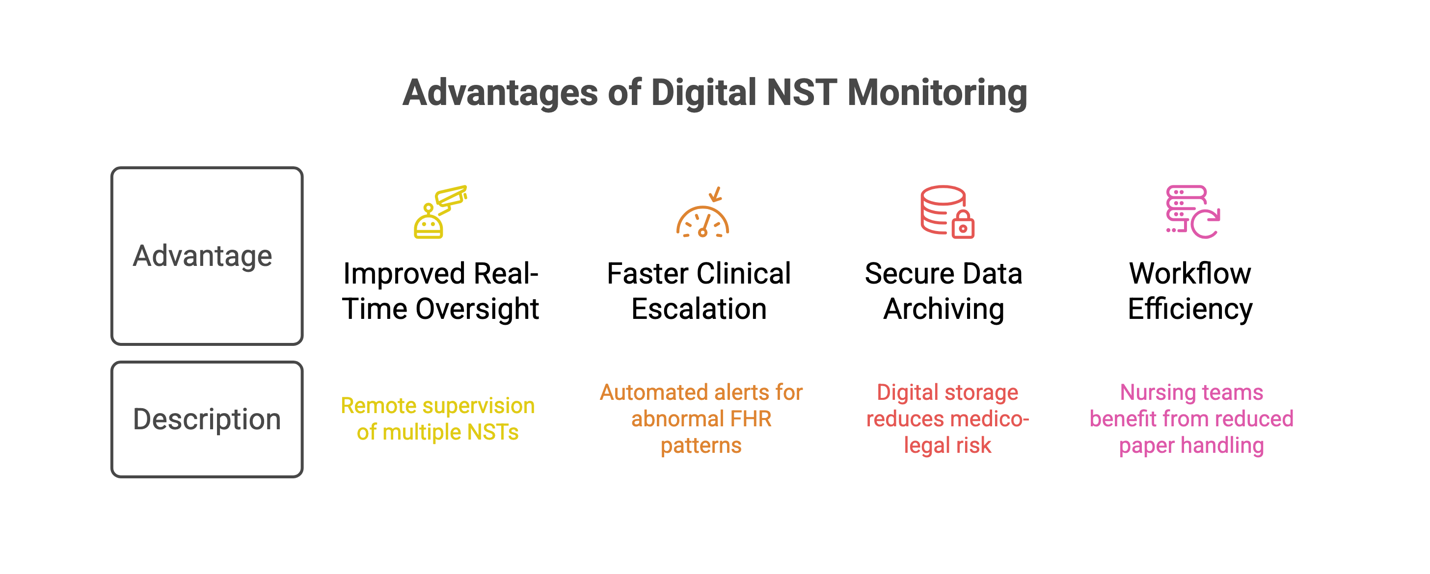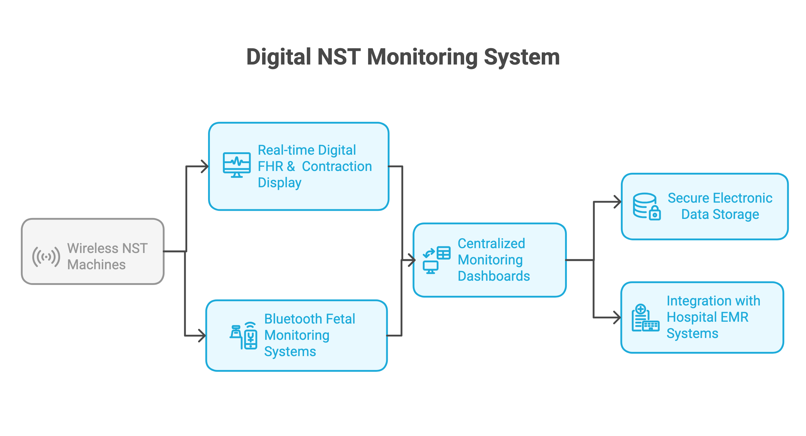 As maternity units evolve, the shift from paper-based NST systems to digital platforms is becoming less about preference and more about preparedness. While traditional NST machines remain functional, digital NST monitoring offers advantages in centralized oversight, faster escalation, secure documentation, and workflow optimization.