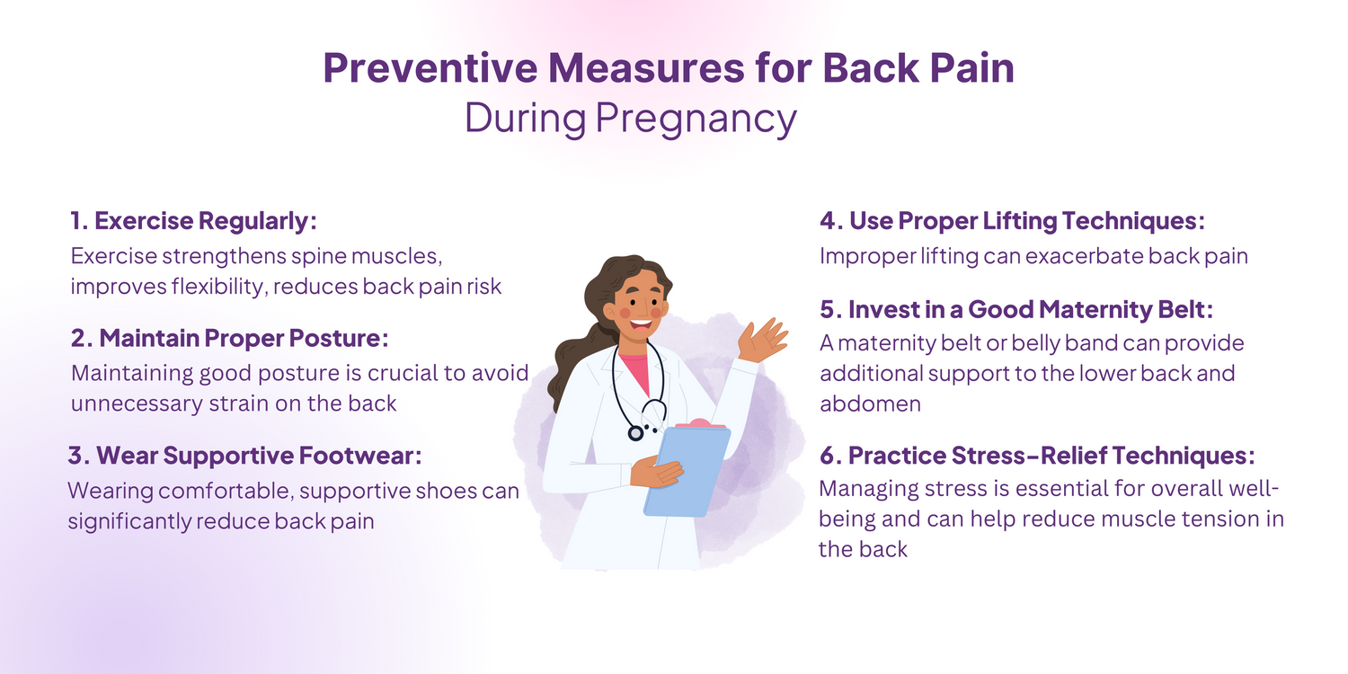 While back pain during pregnancy is common, several preventive measures can help minimise discomfort and maintain a healthy spine. Here are some practical tips: